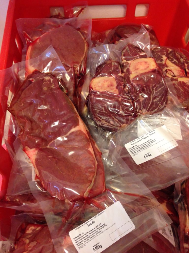 Die Fleischabholung erfolgt auf dem landwirtschaftlichen Betrieb „Hof Steinfurt“ unseres Sohnes in Mielkendorf.